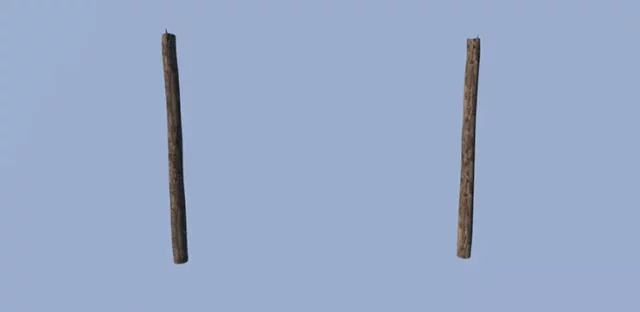 После размещения разметки, установите 2 длинных деревянных бревна в соответствующий раздел интерфейса стены и закопайте их с помощью лопаты, кирки или мотыги.
