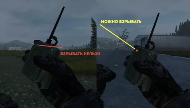 Чтобы снарядить самодельный контейнер для взрывчатки или заряд пластичной взрывчатки, возьмите блок дистанционного подрыва в руки, наведите на взрывчатку и в контекстном меню выберите пункт «Снарядить взрывчатку».